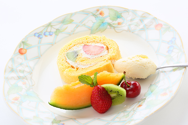手作りならではの甘さをおさえたケーキとフルーツ、アイスクリームが料理の最後を引き立てます!
