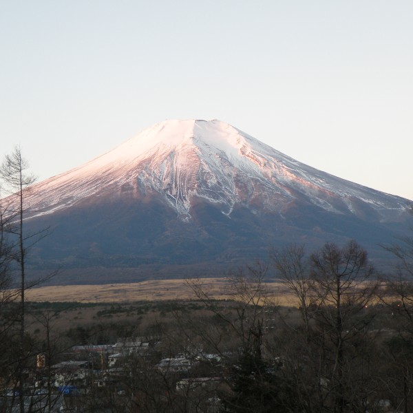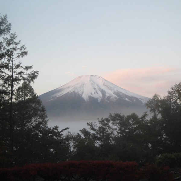 昨日の雨も上がり・・ 日の出と共にに薄っすらとピンクに染まった富士山!