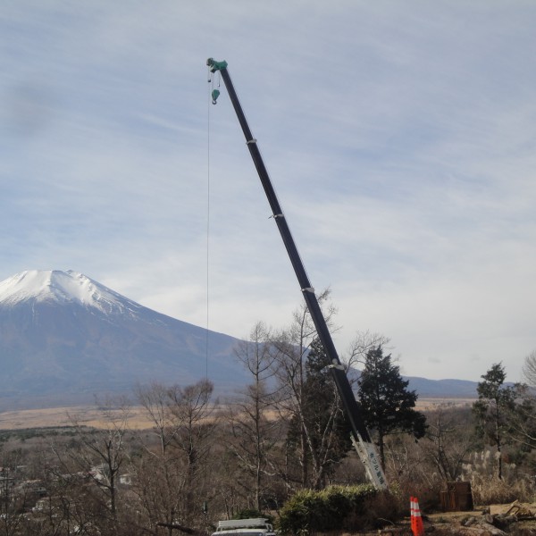 当館から富士山の眺望を楽しんで頂くために、数本の木を特殊重機で伐採しました。