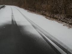 昨夜の冷たい雨が雪になり、朝には日陰の部分に雪を残したよう・・