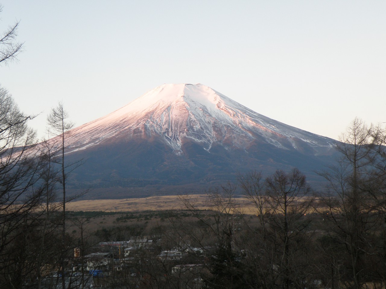 ペンションくりの木の下では、暖かいお部屋の中からも紅富士をご覧いただけます!!