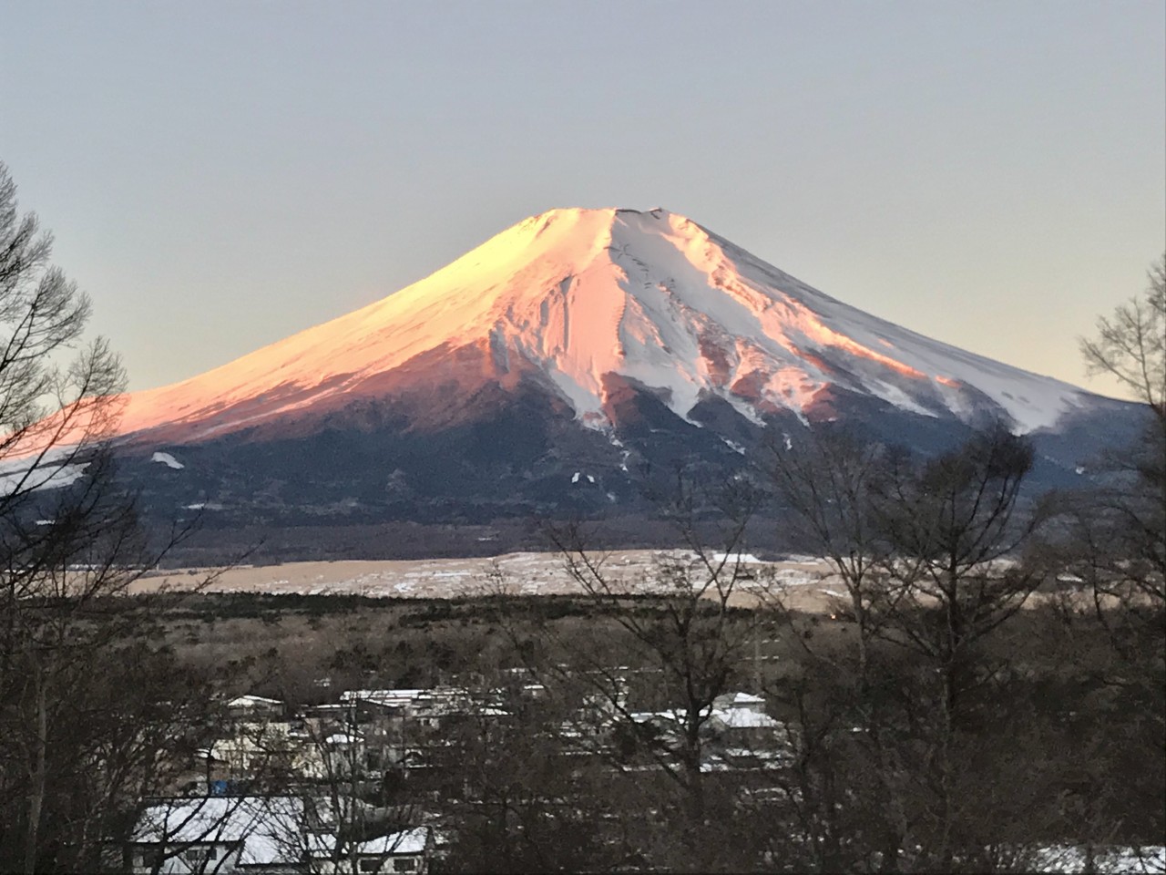ピリッとした冬の寒い朝、富士山が特別なピンク色に染まる紅富士、