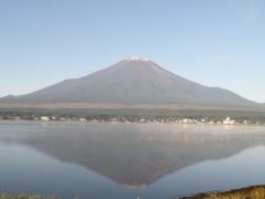 10月2日山中湖から見えた初雪化粧の富士山と逆さ富士!