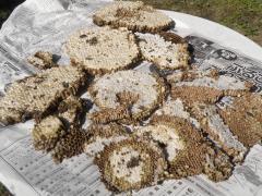 富士山麓では、秋の恵みの一つに地蜂の子(クロスズメバチ)を食べる習慣があり、