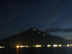 山小屋の灯りと登山者のライトが見る事が出来ます。