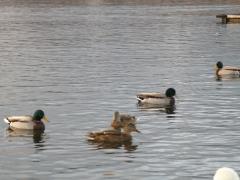 山中湖面では、冬鳥の代表カモ類が600羽ほど越冬します。
