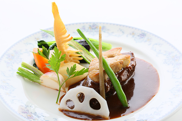 富士山麓の恵みである新鮮素材を中心に、オーナーシェフが厳選。一品一品、心を込めて作られたフレンチフルコース料理をお楽しみいただけます。