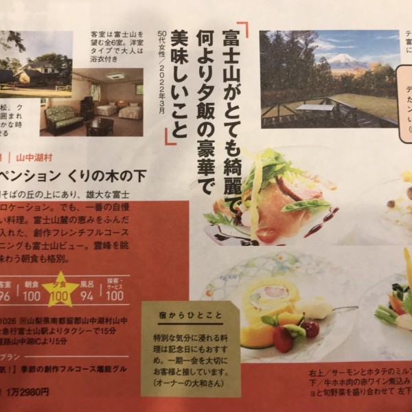 ワンランク上の料理が自慢 富士山麓・山中湖 食彩ペンション「くりの木の下」