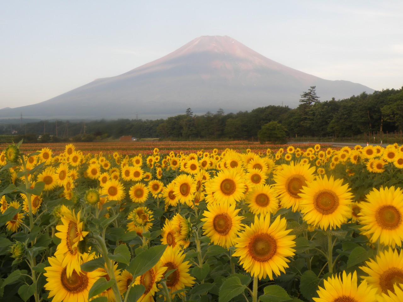 早朝の赤富士とひまわりのコラボレーションは必見です。